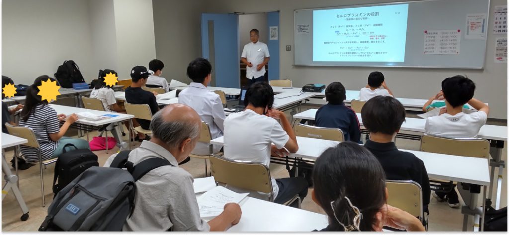 前半の講義では、生命活動を維持するために必要な栄養素のひとつである「銅」について学びました。