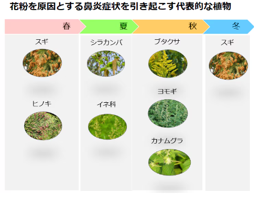 近年では冬から春にかけてスギ花粉症、夏にはイネ科の花粉症、秋はブタクサ花粉症などが報告がされており、花粉症は「通年病」とも言われつつあります。