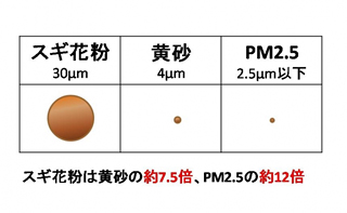 粒子の大きい花粉など、7μm以上の粒子状物質は、吸い込んでも咳やくしゃみにより体外に排出されます。しかし2μm以下の粒子状物質の30~60%は、肺の最深部にまで入り込み、細気管支や肺胞に沈着します。